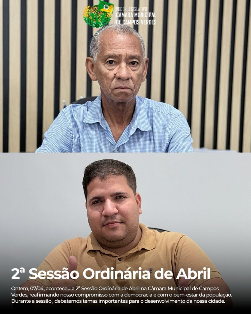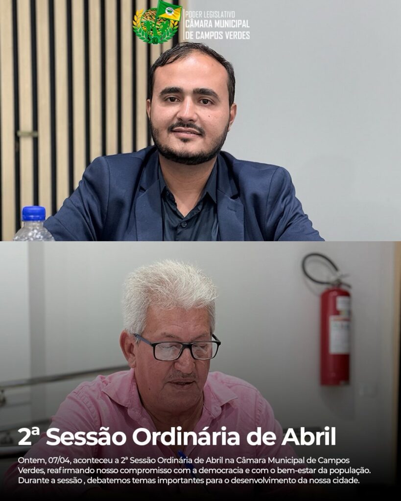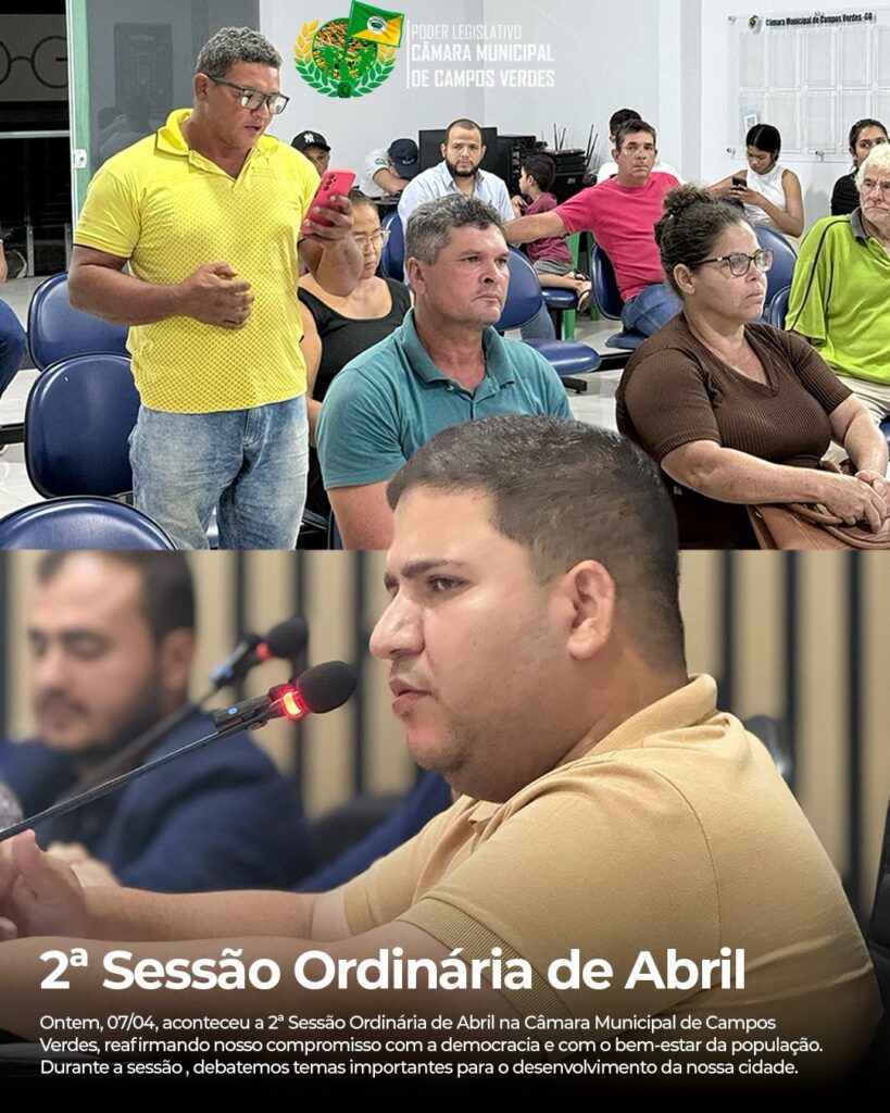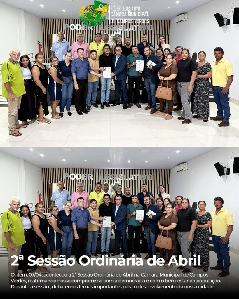 Ontem realizamos a nossa 2ª Sessão Ordinária do mês de abril aqui na Câmara Municipal de Campos Verdes, um encontro marcado por decisões fundamentais para o nosso município. Tivemos a primeira votação de projetos de extrema relevância para a nossa população.